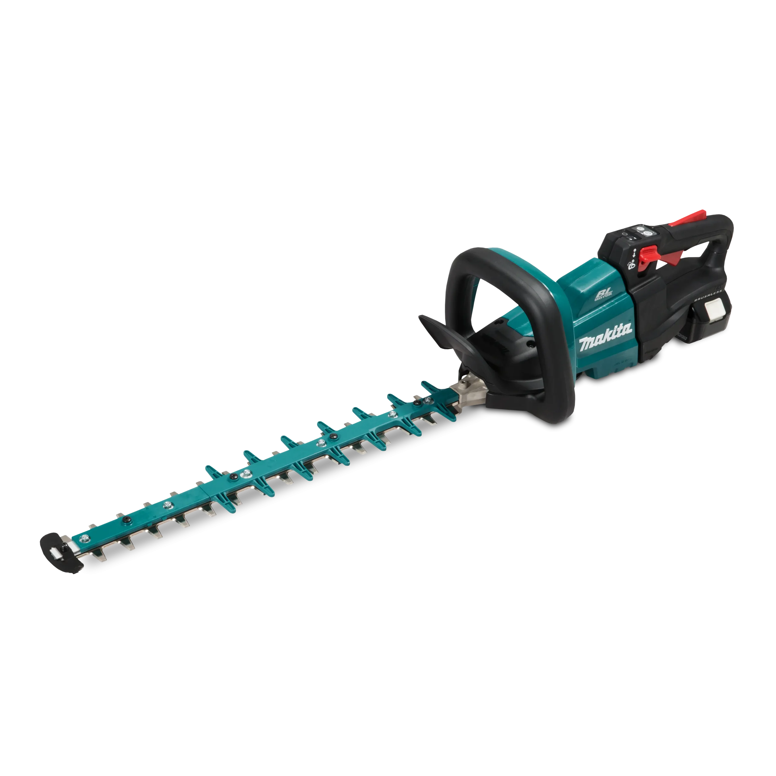 Cortasetos de 50 cm (19-5/8") inalámbrico LXT BL de 18 V sin escobillas El motor BL ofrece 4400 SPM para un corte más rápido Se logró un excelente equilibrio entre alta potencia y maniobrabilidad liviana al usar una batería LXT de 18 V como fuente de energía Interruptor de doble acción para mayor seguridad Diseño de 3 velocidades variables (alta: 0-4400, media: 0-3600, baja: 0-2000 SPM) para un control de velocidad óptimo El control de velocidad constante mantiene la velocidad constante bajo carga El sistema de rotación inversa libera la cuchilla cuando está atascada por ramas gruesas Baja vibración; gracias a cinco amortiguadores de goma utilizados para cuatro secciones (dos dumpers en la parte delantera, uno en cada dumper en la sección superior, izquierda y derecha) que absorben las vibraciones de las piezas móviles, El valor de exposición a vibraciones no supera el valor límite de 2,5 m/s²; por lo tanto, el control de la exposición a vibraciones no es necesario ni siquiera en los países que cuentan con las reglamentaciones, La hoja de 50 cm (19-5/8") proporciona una mayor capacidad de corte El agarre suave proporciona un agarre cómodo y seguro, Freno eléctrico para aumentar la productividad y la seguridad del operador El protector de la punta de la hoja protege la hoja del desgaste innecesario El circuito de protección de la batería protege contra sobrecarga, sobredescarga y sobrecalentamiento Inalámbrico para una puesta en marcha instantánea, cero emisiones y mantenimiento reducido La tecnología de protección extrema (XPT) está diseñada para mejorar la resistencia al polvo y al agua para operar en condiciones adversas