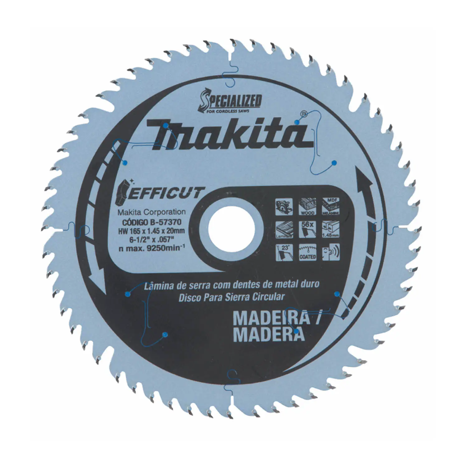 Disco De Sierra 6 1/2″ 165Mm. X 20Mm. X 56T 1,45 Madera / Mdf / Laminete Efficut»